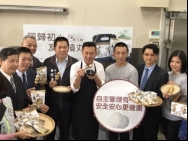 | 106.1.7食品所廖啓成所長(右2)、新竹市林智堅市長(左5)等出席無添加人工磷酸鹽摃丸新產品發表會。 |