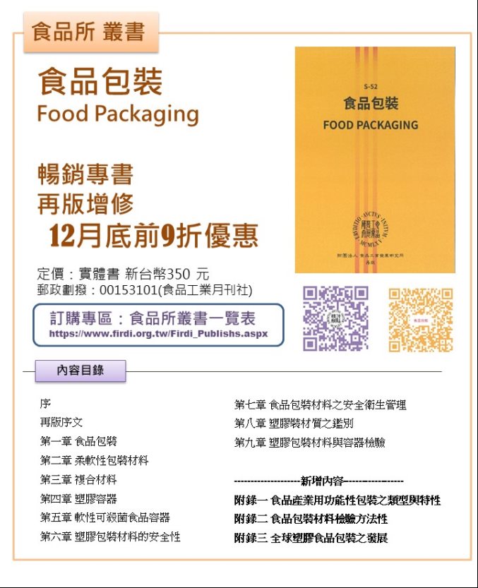 詳情請洽食品所叢書購買專線: 03-5223191 分機261 蔡小姐