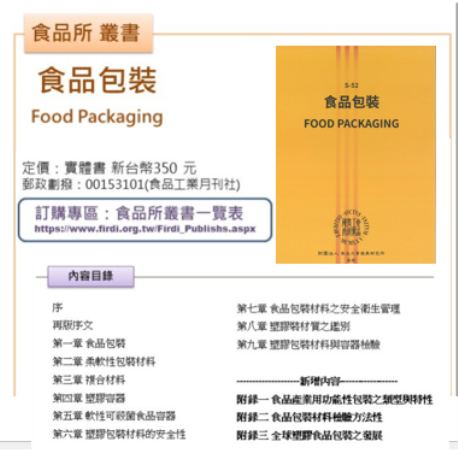 食品所叢書中,暢銷專書—食品包裝Food Packaging,現已增修再版